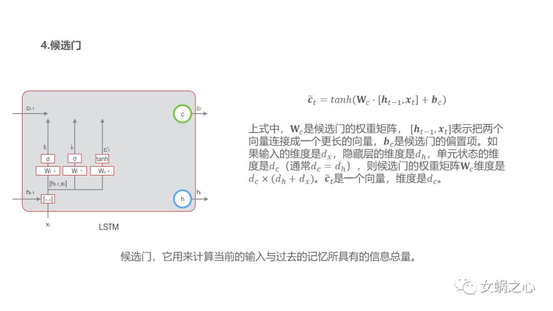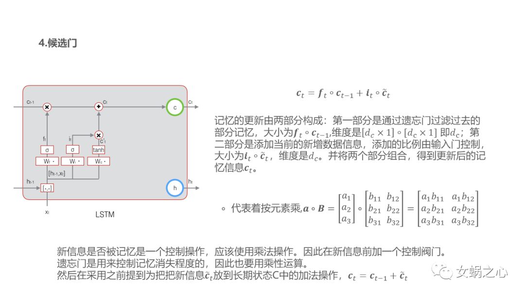 新信息是否被记忆是一个控制操作,应该使用乘法操作。因此在新信息前加一个控制阀门。