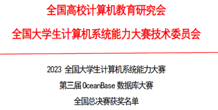 2024年1月6日,根据大赛章程和技术方案,经过大赛技术委员会的复核,现将2023全国大学生计算机系统能力大赛:第三届OceanBase数据库大赛全国总决赛获奖名单公布如下: