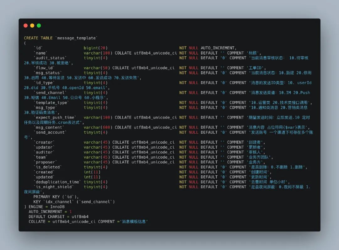 这张表开始解释吧,所有的字段我都添加了注释,应该还是比较容易看得懂的。