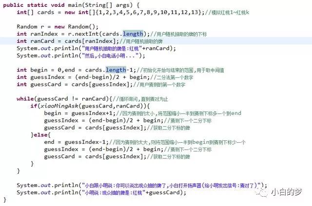 其实就是小明在电话那头每次猜测中间的那张牌,而小白只需要通过言语暗示小明猜测的牌应该更大些还是更小些(至于如何暗示可以与小明提前"串通"好),小明每次根据小白的提示缩小自己猜测的范围,由于2的4次方是16,即16以内的数字最多猜测4次即可.
