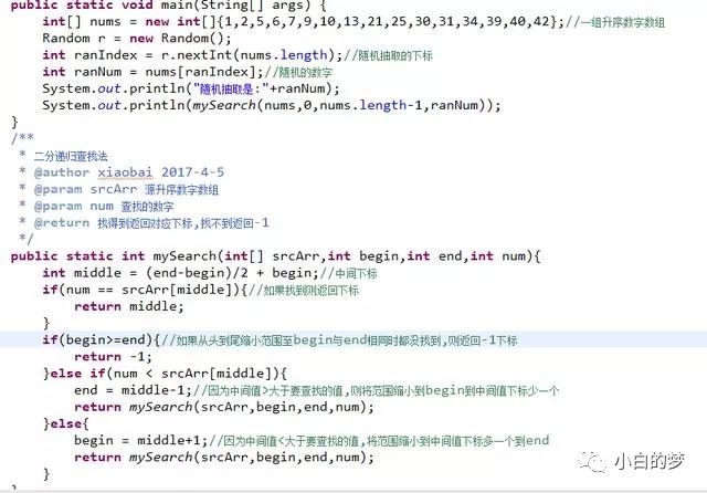 上面举得魔术例子其实就是二分循环查找的方法,下面我们就把二分循环查找算法和二分递归查找算法敲一遍,大家就下面图中的内容理解一下:
