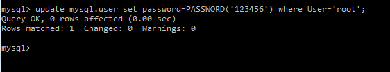 5、之后输入命令:update mysql.user set password=PASSWORD('新密码') where User='root',回车,修改root用户的密码: