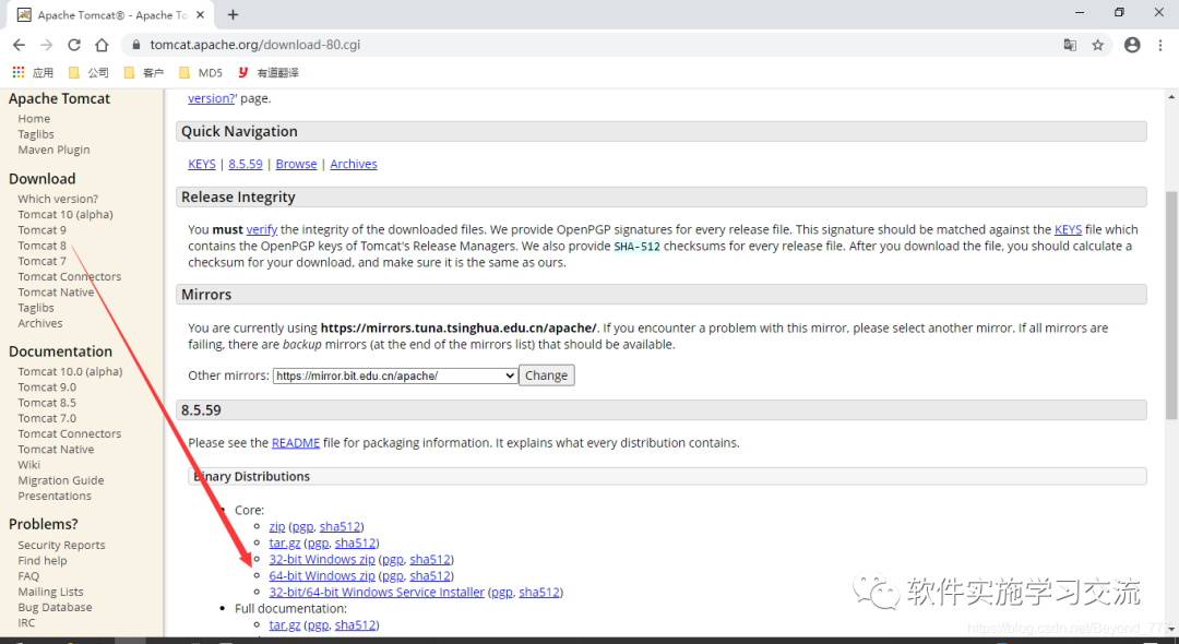 2、根据需要选择tomcat的版本(示例:apache-tomcat-8.5.59-windows-x64.zip)