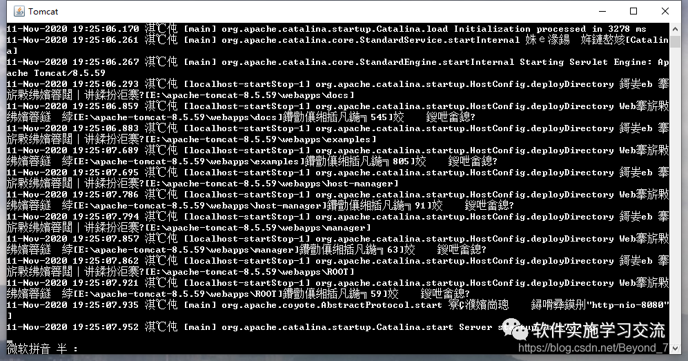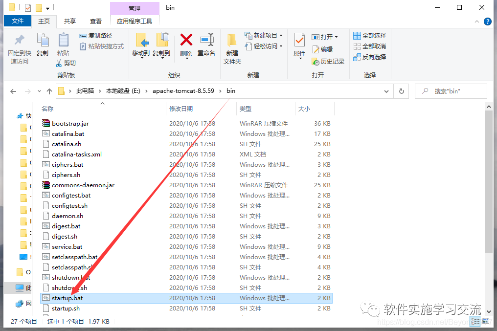 1、把下载的apache-tomcat-8.5.59-windows-x64.zip 解压缩,得到apache-tomcat-8.5.59,双击apache-tomcat-8.5.59\bin\startup.bat
