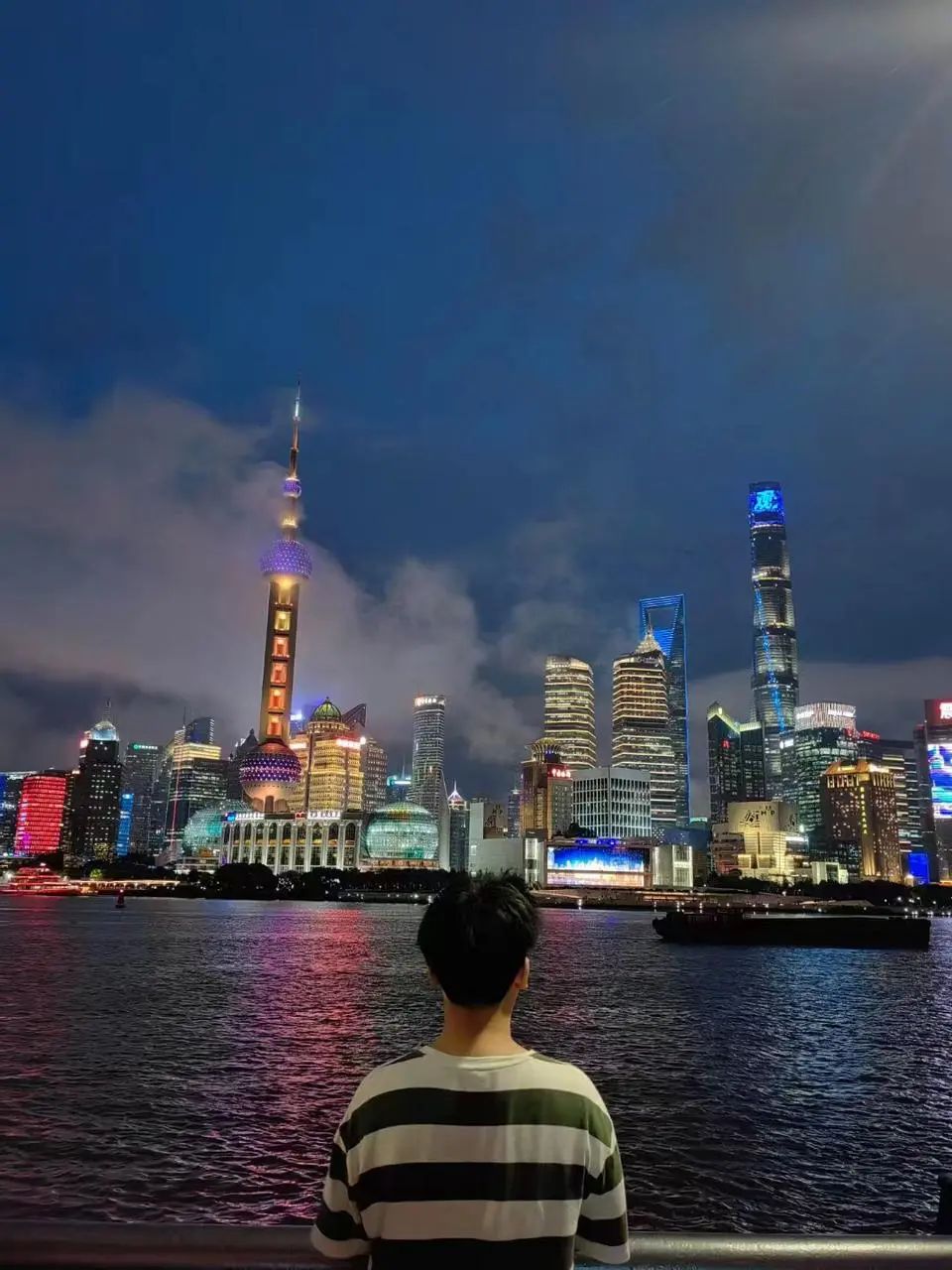 还有就是上海让我觉得很新潮,有各种新鲜事在这个地方发生,无论是美食,还是新技术,都能在这里第一时间领略到。下面放一张我站在黄浦江边的照片,远处是来上海必打卡的东方明珠。