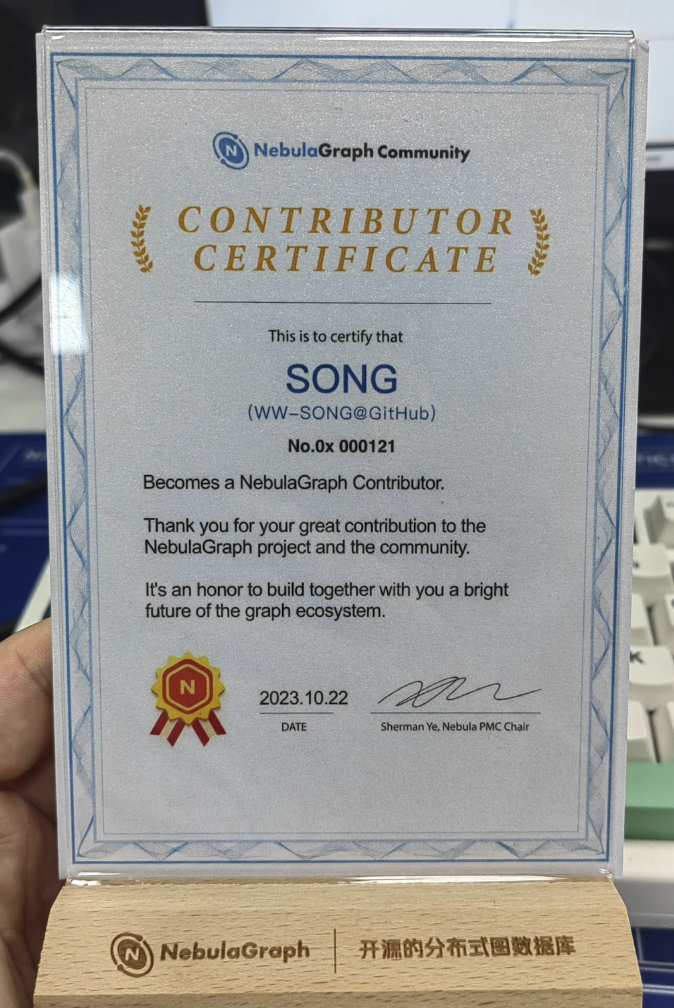 感觉 NebulaGraph 社区的文化经营得非常不错,能很好地识别社区身份、快速构建文化认同。我认识一些其他社区的小伙伴,完成项目交接后,很少有收到证书或者礼物,感觉像纯粹的劳务关系,活动结束了就没后续了。其实,个人觉得应该让开源社区的小伙伴,在参与社区项目建设过程中,建立起对社区的认同感,这点 NebulaGraph 社区做得会好很多。