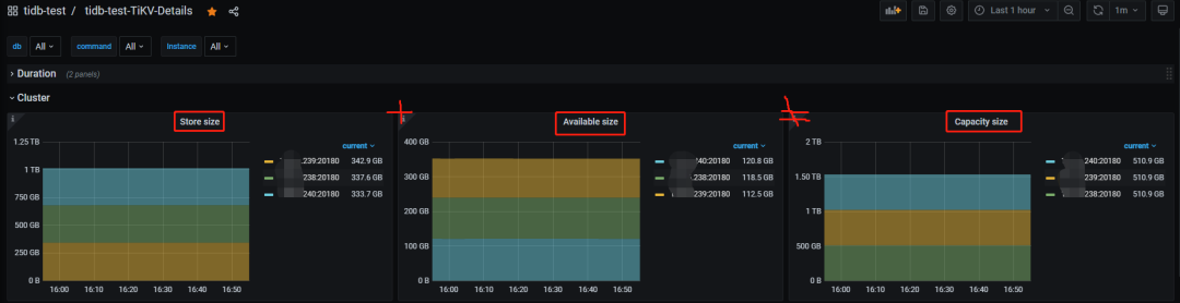 再仔细点看,监控上显示的总容量大小和 TiKV 实例所在盘大小也不匹配。