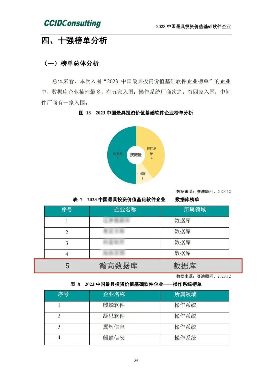 喜随春至,瀚高再获权威机构关注。赛迪顾问软件与信息服务业研究中心发布《2023中国最具投资价值基础软件企业》报告,旨在筛选出中国符合发展战略、具有发展潜力的最具投资价值的基础软件企业。瀚高股份凭借领先的技术优势及广阔的市场发展前景,实力登榜“2023中国最具投资价值基础软件企业”数据库企业TOP5。