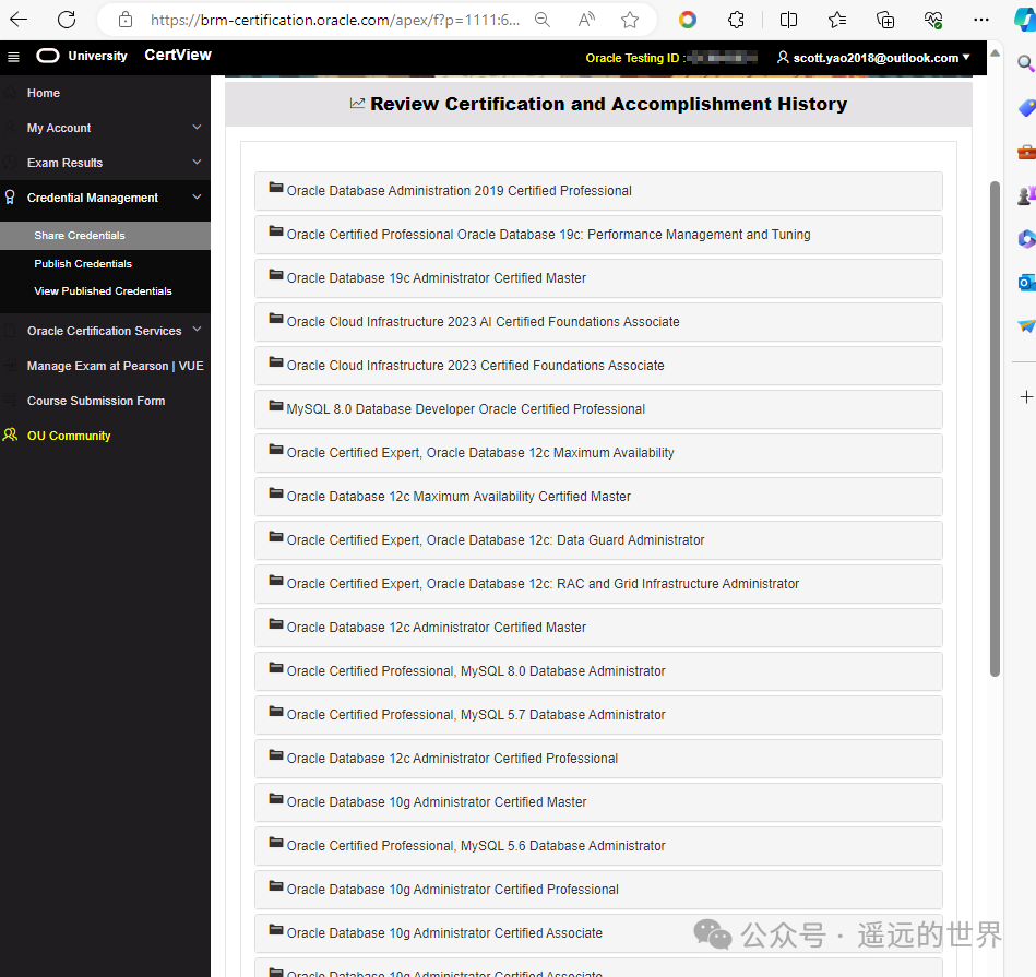 。如果您需要这些资料请联系我。下面是我在Oracle网站上的证书清单截图: