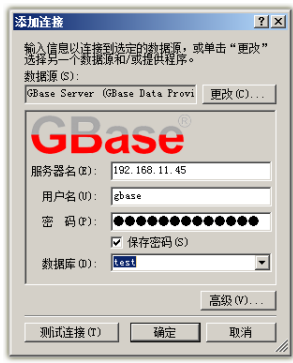 从列表中选择“GBase Server”项目后,则会弹出“添加连接”对话框,
