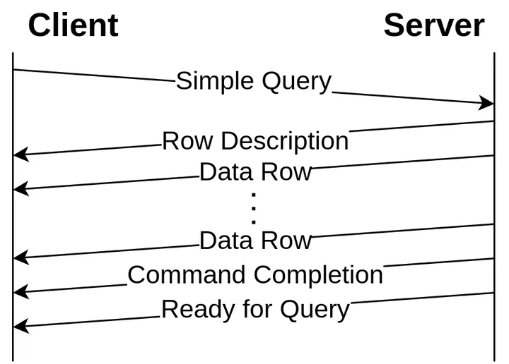 (1 row)Simple Query 的协议交互示意图如下: