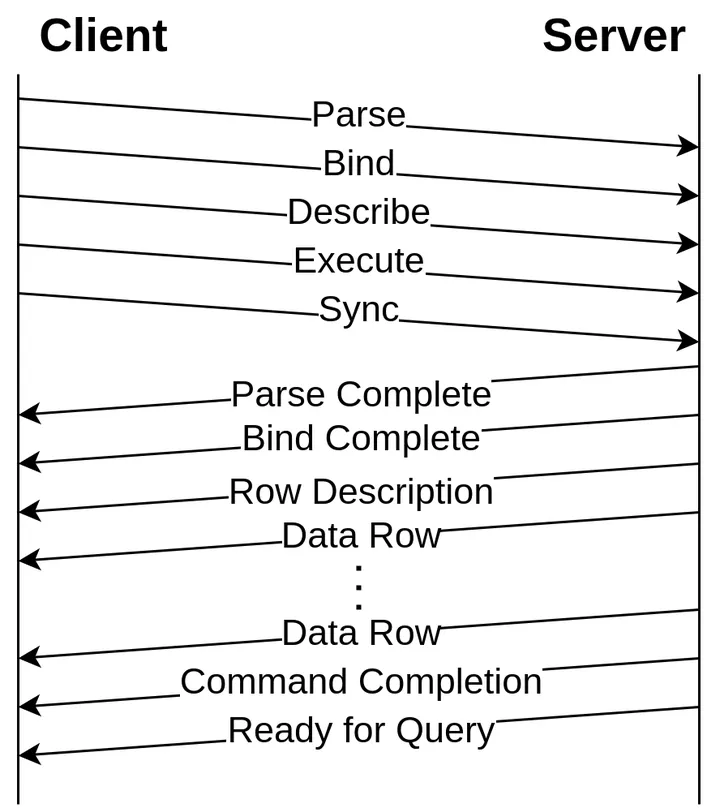 ResultSet resultSet = ps.executeQuery();Extended Query 的协议交互示意图如下: