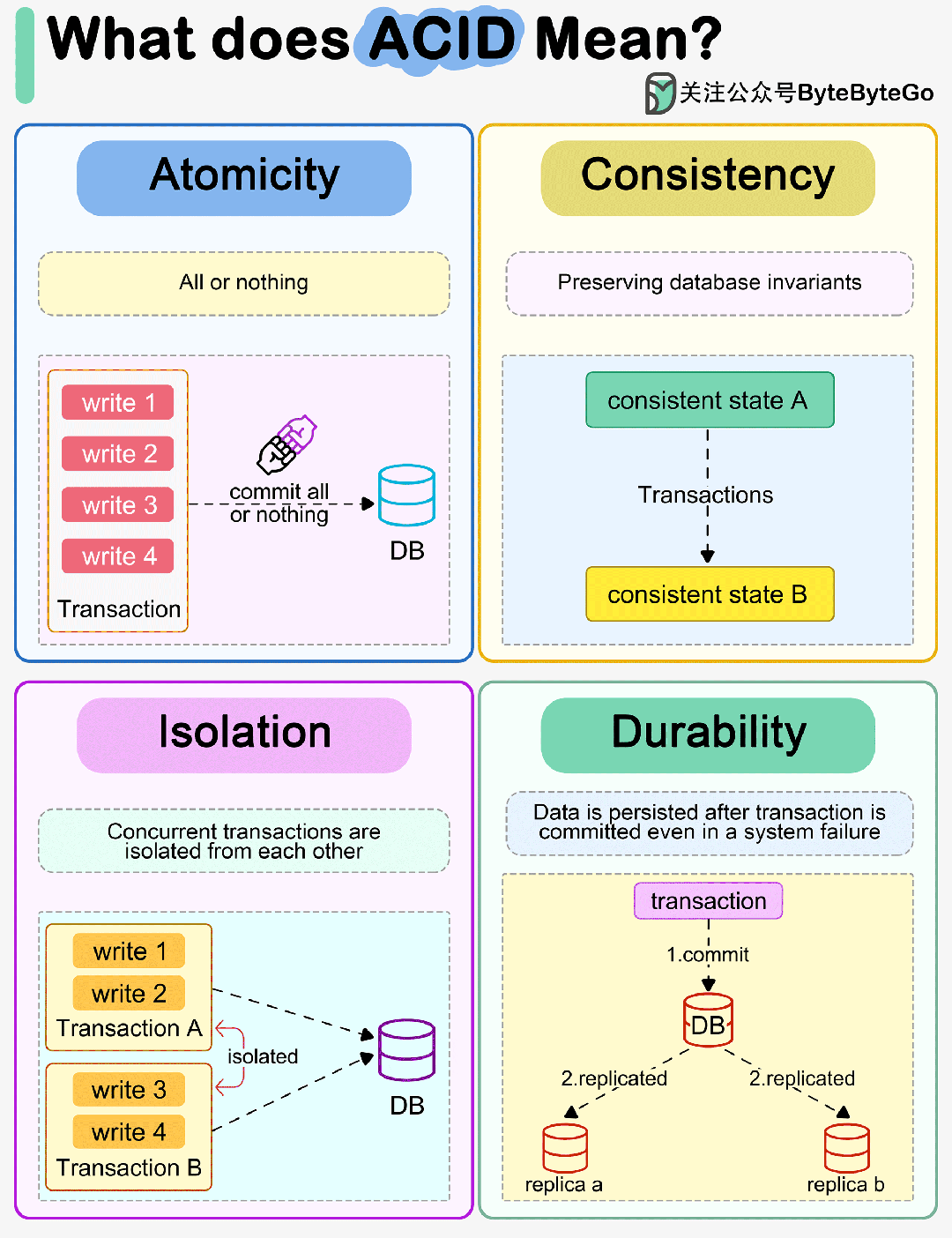 下图解释了 ACID 在数据库事务中的含义。
