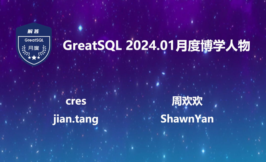 为了帮助社区的小伙伴们更好地了解 GreatSQL 社区的实时进展,我们决定每月更新发布一次 GreatSQL 社区月报。月报的主要内容包括:整理展示最近一个月的社区大事动态,最近一个月内为项目提交过 Commit 的贡献者,并对近期重要的 PR 进行解析;同时还包含了社区上一个月发布的原创技术博客整理分类。