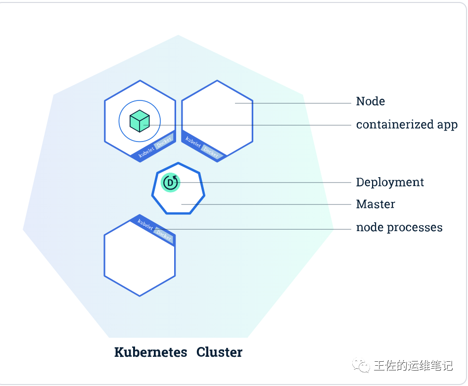 Pod(容器组)是 k8s 集群上的最基本的单元。当我们在 k8s 上创建 Deployment 时,会在集群上创建包含容器的 Pod (而不是直接创建容器)。每个Pod都与运行它的 worker 节点(Node)绑定,并保持在那里直到终止或被删除。如果节点(Node)发生故障,则会在群集中的其他可用节点(Node)上运行相同的 Pod(从同样的镜像创建 Container,使用同样的配置,IP 地址不同,Pod 名字不同)。