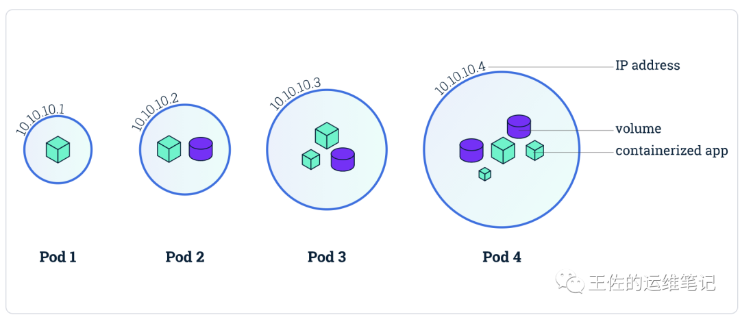Pod 是一组容器(可包含一个或多个应用程序容器),以及共享存储(卷 Volumes)、IP 地址和有关如何运行容器的信息。