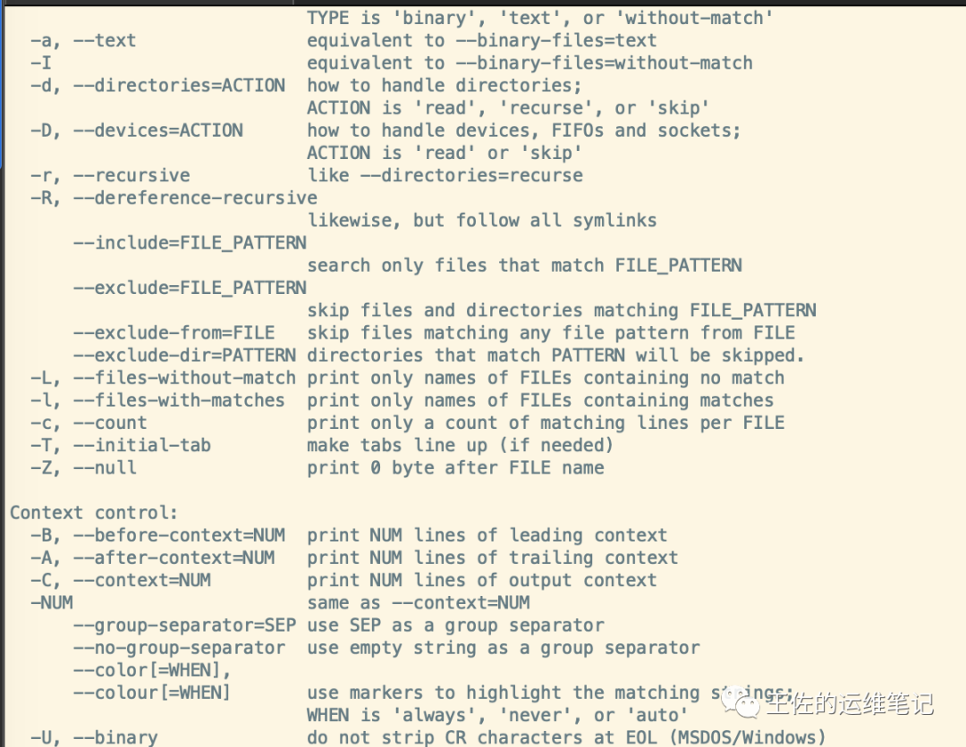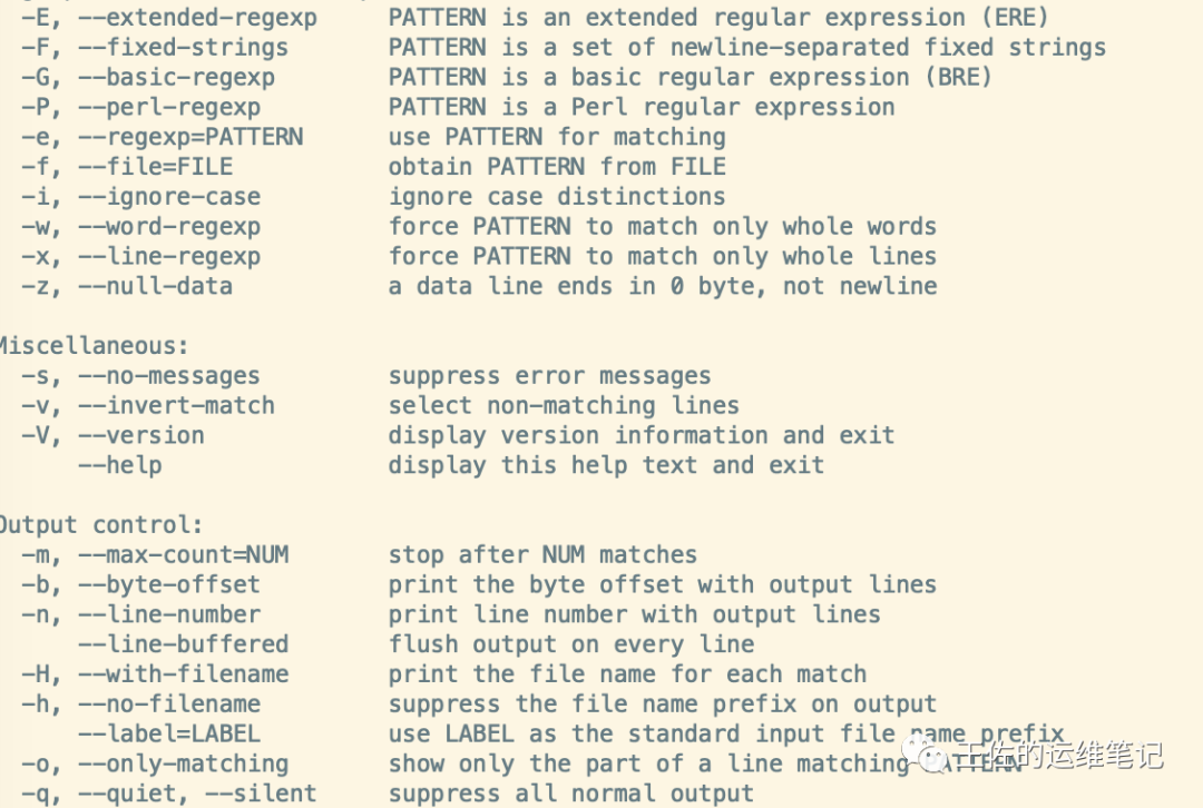 可以使用grep --help