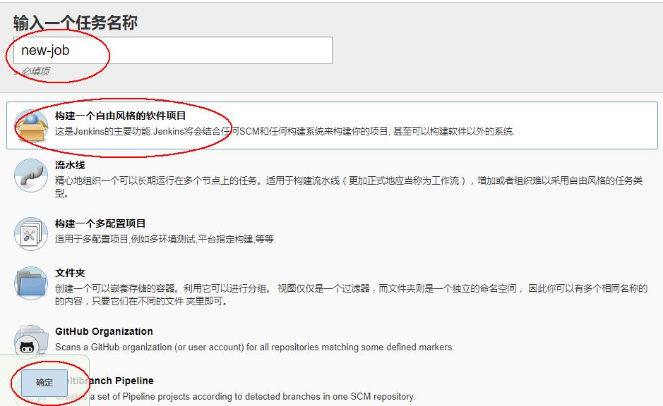 输入任务名称-->选择构建一个自由风格的软件项目-->点击确定