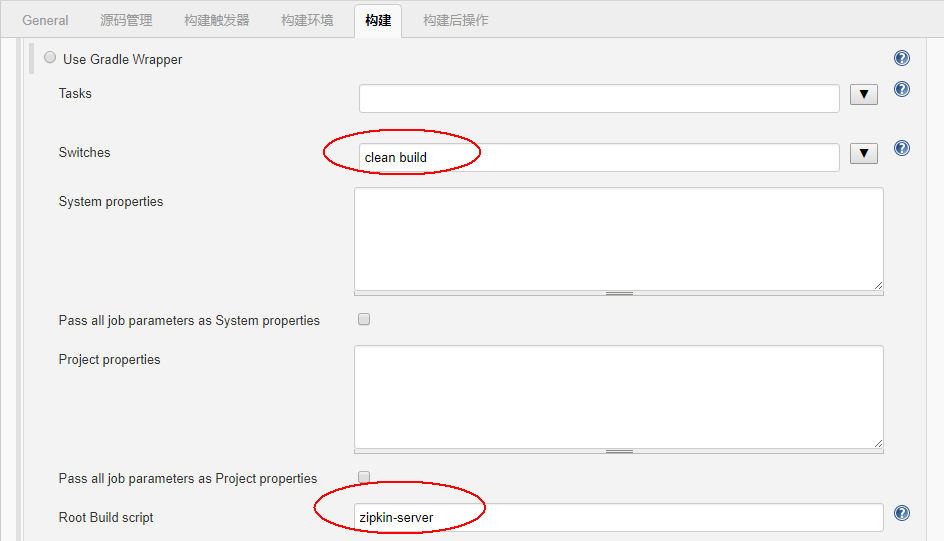 Switches(输入构建命令:clean build)--> Root build script (输入构建工作目录,该目录为git仓库中项目文件夹名称)
