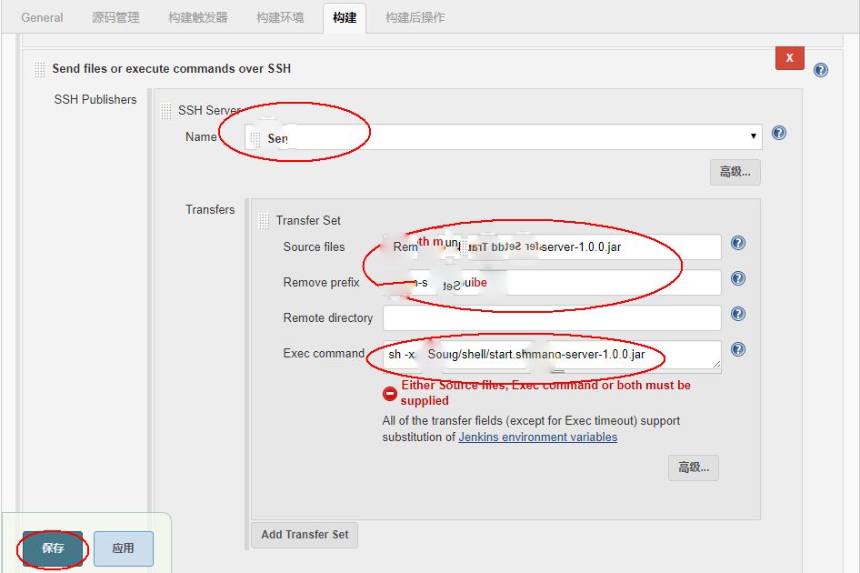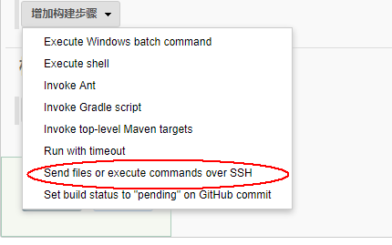 再次增加构建步骤-->选择Send files or execute commands over SSH