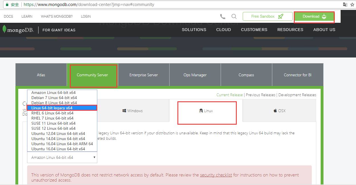下载地址https://fastdl.mongodb.org/linux/mongodb-linux-x86_64-3.4.10.tgz