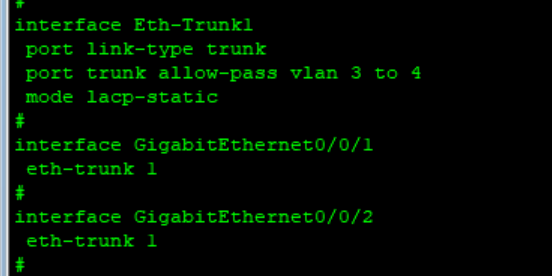 交换机配置trunk,模式为lacp-static,allow-pass允许通过的vlan3 to 4改为实际需要的vlan即可,本实验为vlan3和vlan5 所以改为3 5即可。
