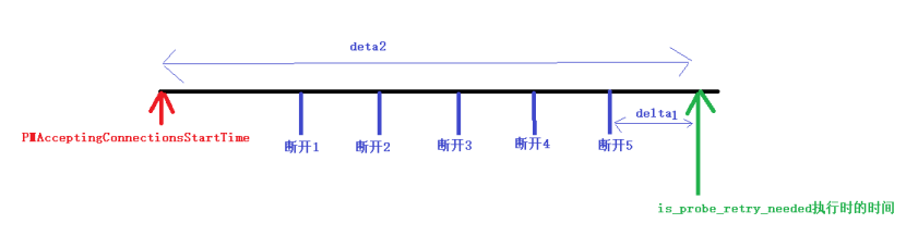 正常情况deta不可能为负数,因为is_probe_retry_needed函数执行时的时间是实时获取,此时断开时间:要么已断开得到时间,要么还没断开。为负数只能是deta1或者deta2太久远了,导致数据类型溢出,那么此时可能是超过gp_fts_mark_mirror_down_grace_period值的。