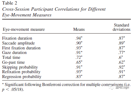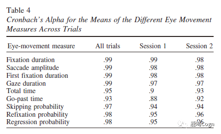 ,比Vigneau(2006)所使用的基础眼动指标而言提高了40%左右的解释率,这说明该眼动轨迹算法在个体差异研究中比传统的指标具有更大的优势。