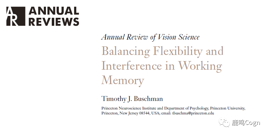 文章信息:Buschman, T. J. (2021). Balancing Flexibility and Interference in Working Memory. Annu Rev Vis. Sci., 7:6.1-6.22 https://doi.org/10.1146/annurev-vision-100419-104831