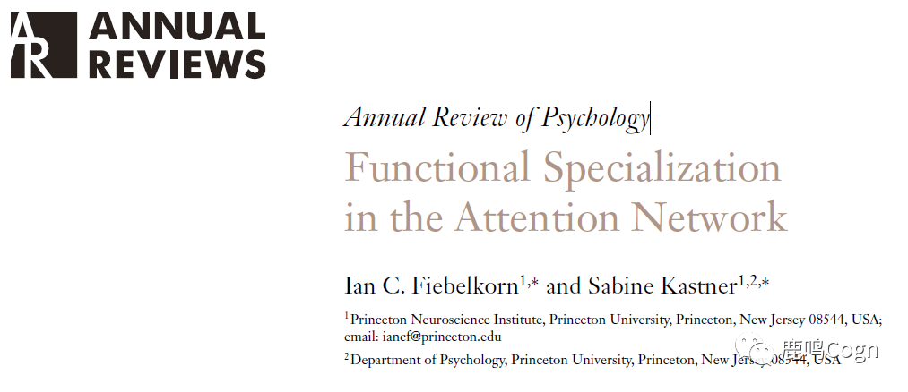 文章信息:Fiebelkorn, I. C., & Kastner, S. (2020). Functional Specialization in the Attention Network. Annu Rev Psychol, 71, 221-249. doi:10.1146/annurev-psych-010418-103429