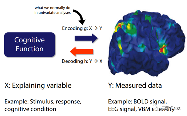 (decoding)的技术。在当跨体素的激活模式能够可靠地区分两个或多个事件(如不同的刺激、任务规则或参与者的反应)时,就可以利用机器学习等分类器来推断出其信息编码