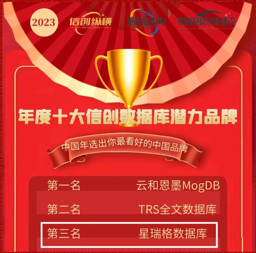 经过20天竞争激烈的投票阶段,近期《信创纵横》发布“中国年选出你最看好的中国品牌系列活动:年度十大信创数据库品牌评选”系列榜单投票结果。星瑞格数据库斩获“年度十大信创数据库潜力品牌”第三名。