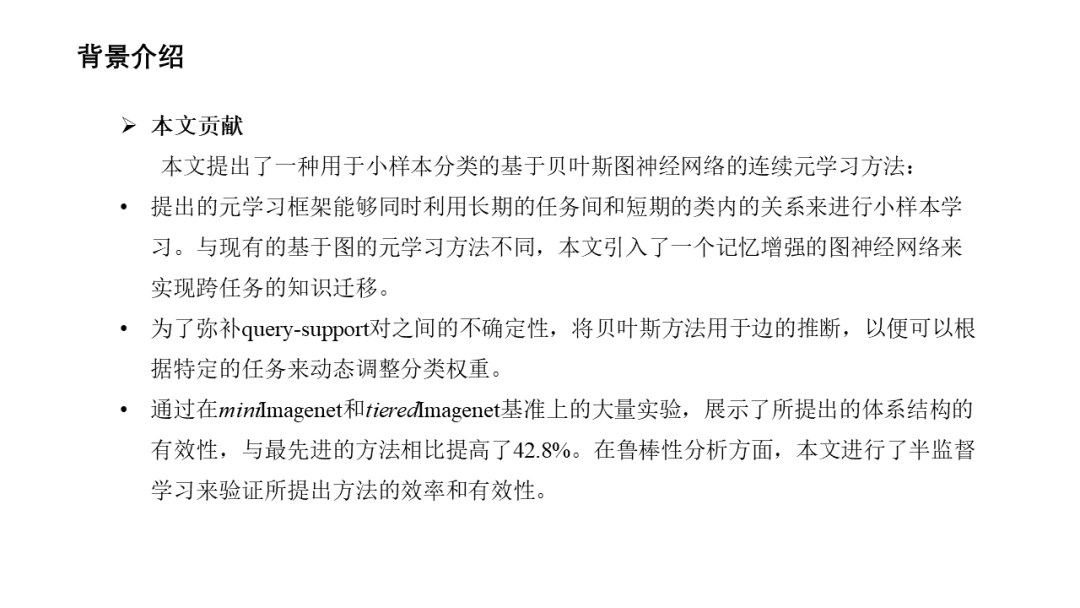 面向少量学习的元学习允许机器利用先前获得的知识作为先验知识,从而提高只需少量数据的新任务的性能。然而,大多数主流模型都存在灾难性遗忘和鲁棒性不足的问题,因此无法完全保留或利用长期知识,同时容易导致严重的错误积累。在这篇文章中,我们提出了一种新的基于贝叶斯图神经网络(CML-BGNN)的连续元学习方法,该方法在数学上把元学习表述为对一系列任务的连续学习。每个任务形成一个图形,任务内部和任务之间的相关性可以通过消息传递和历史转换很好地保存。为了弥补图初始化中的拓扑不确定性,我们利用贝叶斯反向传播策略,该策略利用摊销推理网络逼近任务特定参数的后验分布,该推理网络无缝集成到端到端边缘学习中。在miniImageNet和tieredImageNet数据集上进行的大量实验证明了该方法的有效性和效率,与现有的miniImageNet 5路单镜头分类任务相比,性能提高了42.8%。
