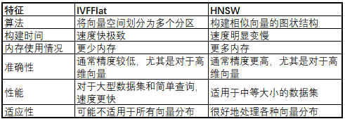 HNSW 更适合复杂的城市布局(高维数据)。而 IVFFlat 更适合大城市(大型数据集)。