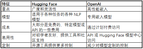 为满足您的嵌入需求,在 Hugging Face 和 OpenAI 之间进行选择取决于几个因素:
