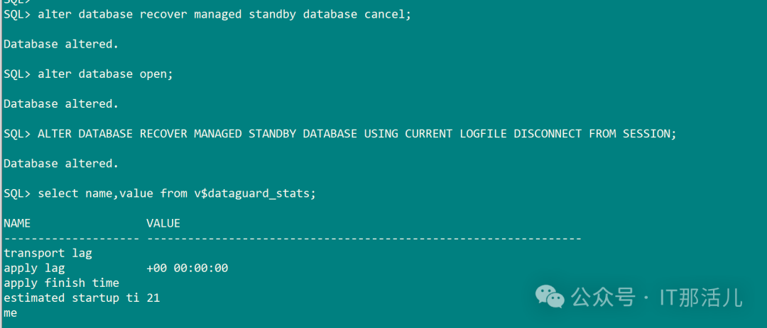 SQL>select name,value from v$dataguard_stats;