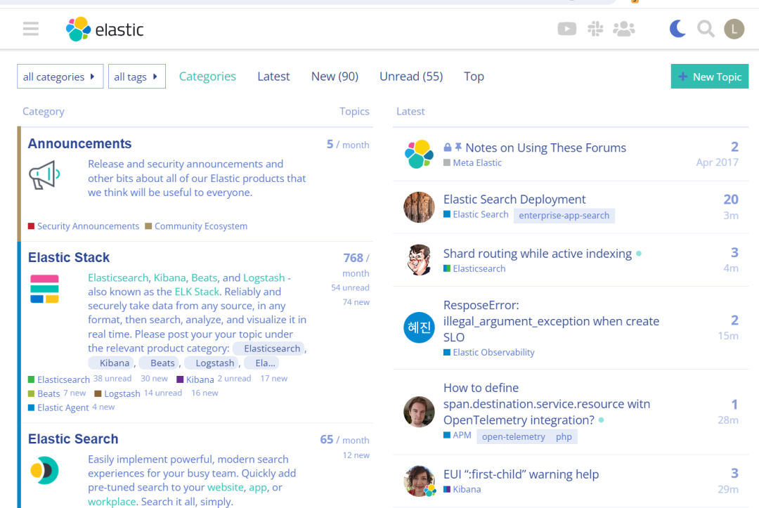 Elasticsearch 社区论文比较成熟,官方论坛地址:https://discuss.elastic.co/。