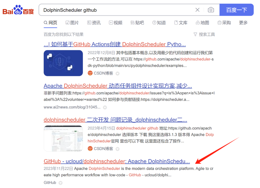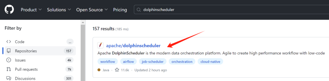 直接访问https://github.com/,登陆之后搜索Apache DolphinScheduler!