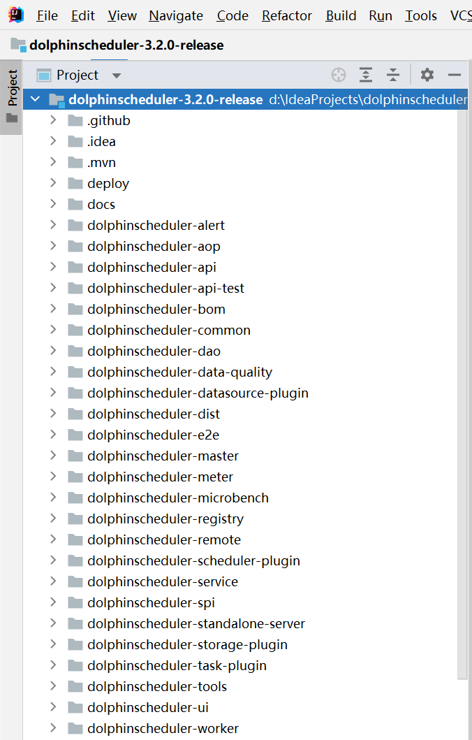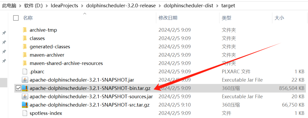 我的位置是 D:\IdeaProjects\dolphinscheduler-3.2.0-release\dolphinscheduler-dist\target