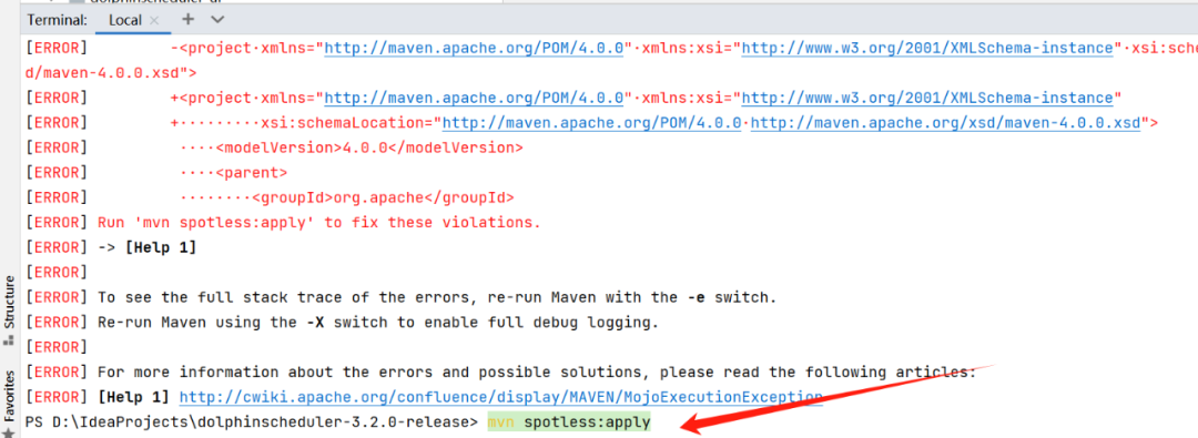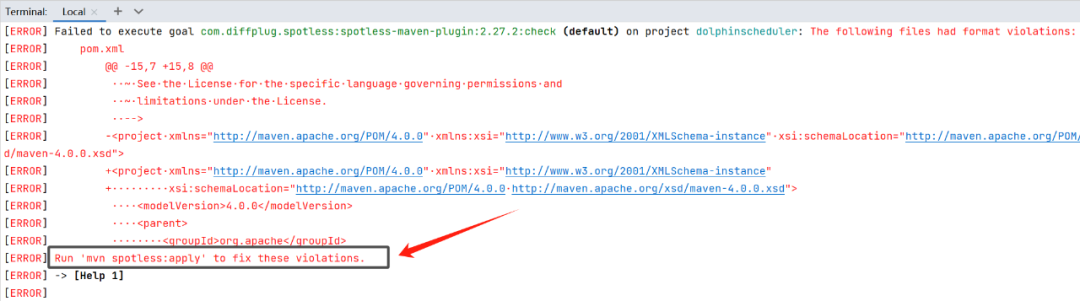 根据上面的提示只需要执行下命令:mvn spotless:apply