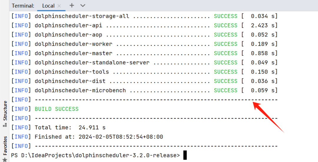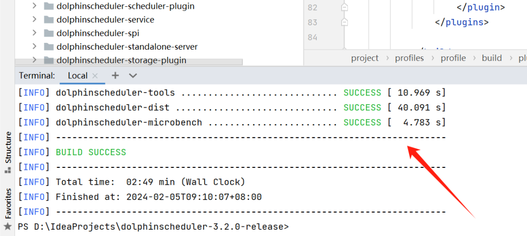 可以看到,已经编译成功了。找到打好包生成的目标文件,位置是:项目源码目录\dolphinscheduler-dist\target
