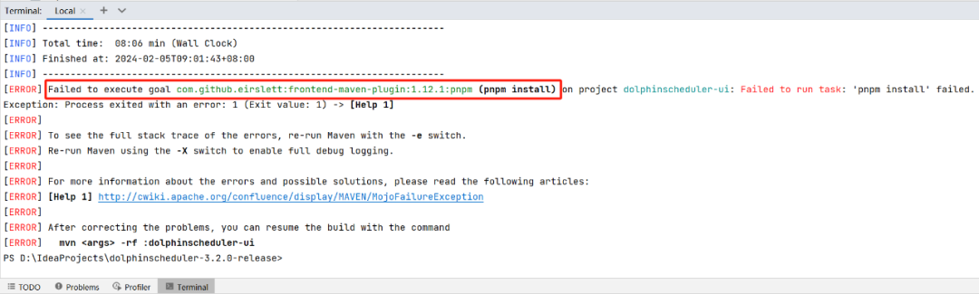 从提示中可以看出来,com.github.eirslett:frontend-maven-plugin