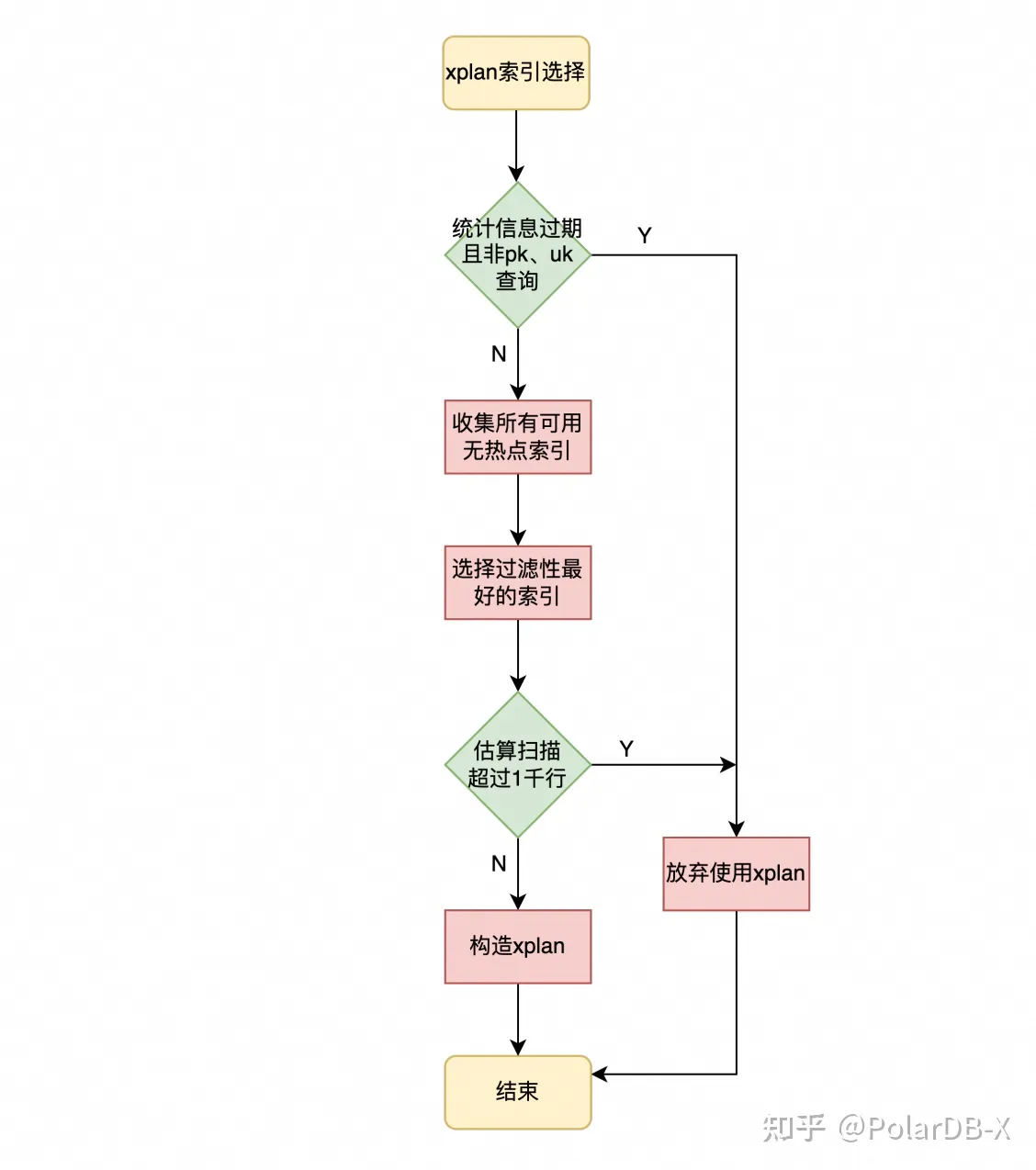XPlan索引选择会尽量减少错选的概率,具体流程下图所示: 首先检查当前表的统计信息是否过期,由于统计信息可能因为各种原因无法自动更新,没有统计信息的索引选择就是乱猜,所以统计系信息过期之后会禁用XPlan,有个小优化是pk、uk的查询不受此影响。