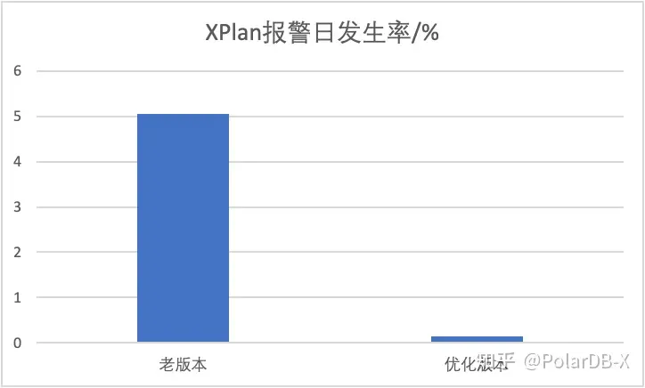 在优化版本XPlan索引选择逻辑改变之后,每天实例出现XPlan选错索引的概率从5%降到了0.1%,下降为原本的1/50。注意老版本的XPlan选错索引后用户可以关闭XPlan,所以真实的错选概率只会更高。
