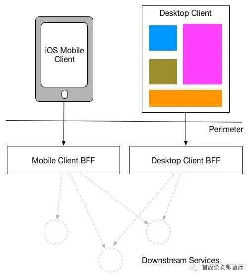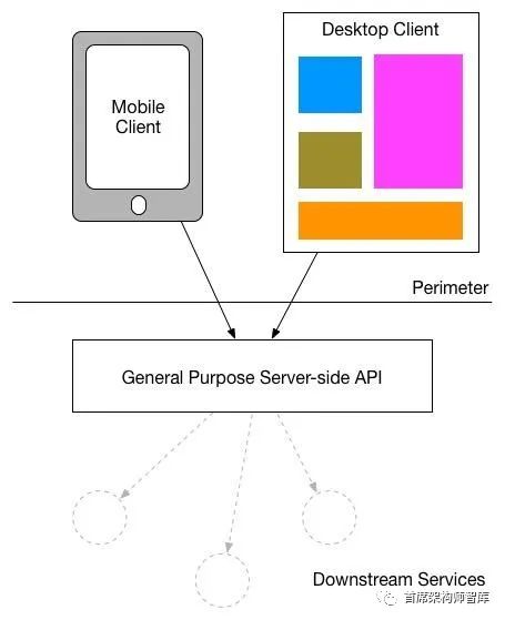 对于这个问题,我在REA和SoundCloud中看到的一个解决方案是,不是有一个通用的API后端,而是每个用户都有一个后端,或者(前SoundClouder)Phil Calçado称之为前端后端(BFF)。从概念上讲,您应该将面向用户的应用程序视为两个组件:位于外围的客户端应用程序和位于外围的服务器端组件(BFF)。