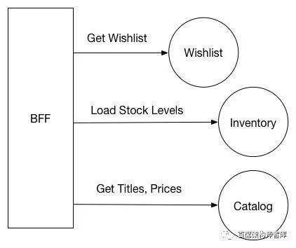 对于有少量后端服务的体系结构,BFFs可能是一种有用的模式。然而,对于使用大量服务的组织来说,它们是必不可少的,因为聚合多个下游调用以提供用户功能的需求急剧增加。在这种情况下,一个对BFF的调用通常会导致多个对微服务的下游调用。例如,设想一个电子商务公司的应用程序。我们要在用户的愿望列表中提取一个项目列表,显示库存水平和价格: