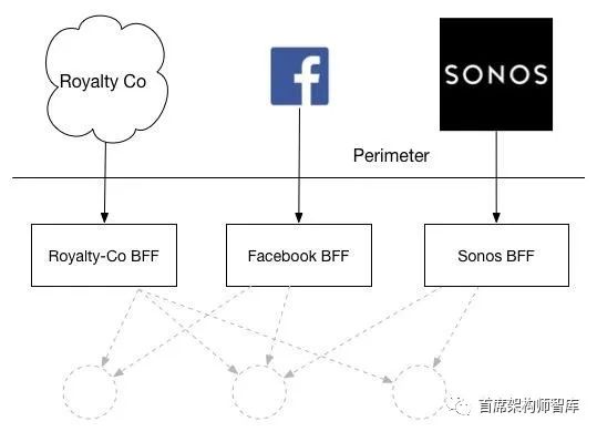 我看到至少有一个组织为其他需要打电话的外部团体使用了bff。回到我多年的音乐商店例子,我可能会公开一个BFF,允许第三方提取版税支付信息,提供Facebook集成或允许流媒体到一系列机顶盒设备: