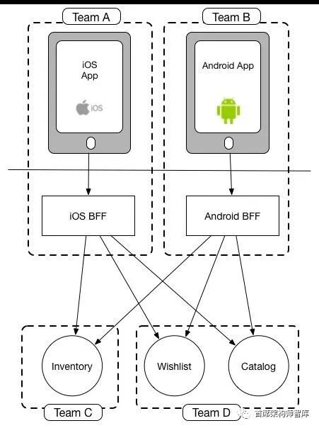 皮特·霍奇森观察到,当围绕团队边界对齐时,BFF最有效,因此团队结构应该决定你拥有多少BFF。所以如果你有一个移动团队,你应该有一个BFF,但是如果你有独立的iOS和Android团队,你会有独立的BFF。我担心的是团队结构往往比我们的系统设计更灵活。因此,如果你有一个移动的BFF,然后将团队分成iOS和Android专业,那么你是否也必须将BFF分开?如果bff已经是独立的,那么拆分团队会更容易,因为您可以重新分配已经独立的资产的所有权。但是,BFF和团队结构的相互作用是很重要的,我们稍后将对此进行探讨。