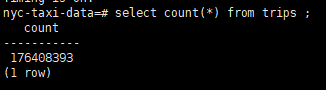 因为该数据库为单机环境,故trips表不再设计分区,直接单表装载,数据情况如下: