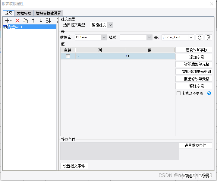 配置一个内置SQL,用于图片上传之后存入数据库中,本文使用Finereport自带的sqlite数据库,使用blob数据类型,存储图片文件。